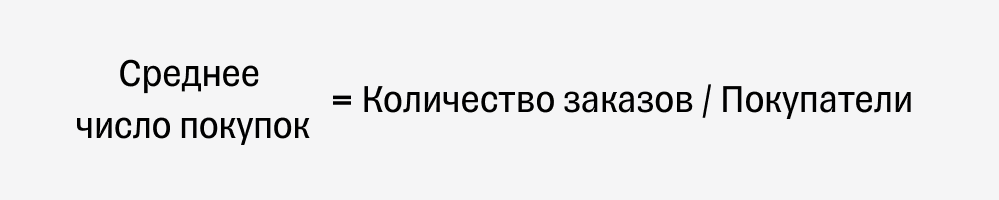 Среднее число покупок (APC — average payment cost). Рассчитывается так: общее количество заказов делят на количество покупателей. То есть кто-то заказывает за месяц пять раз, кто-то — один, а кто-то — три, в среднем на одного покупателя приходится две покупки.