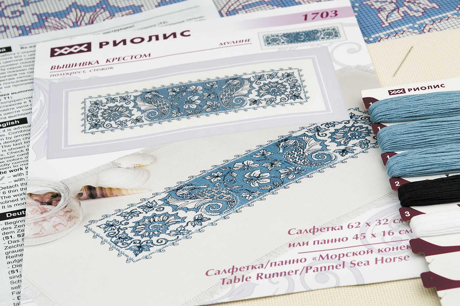 Илья Олегович: Процесс развития рукодельного творчества не стоит на месте, и техник вышивания становится все больше. Рукодельницы совершенствуются в своем мастерстве. С удовольствием в ногу со временем идет и РИОЛИС. Мы постоянно стараемся добавлять неиспользуемые ранее техники в свои наборы. В этот раз, на примере набора 1703 Салфетка/панно «Морской конек» мы предлагаем познать азы легкой в исполнении и невероятно красивой техники ассизи, названной, по преданию, в честь одноименного итальянского городка