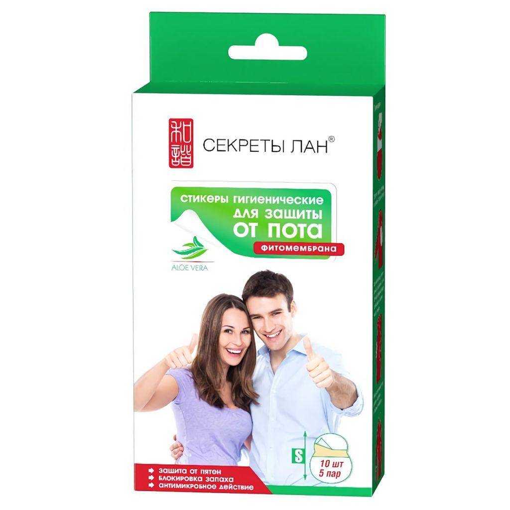 Гигиенические стикеры против потливости подмышек от производителя азиатской косметики «Secrets Lan». Один набор предлагает 5 пар одноразового применения, каждая в индивидуальной упаковке. Для надежной фиксации предусмотрен липкий слой, при этом контактировать с кожей будет мягкая деликатная поверхность из натурального хлопка.