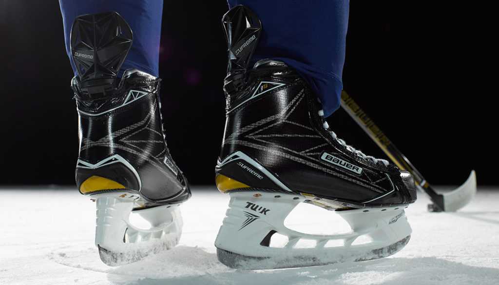 Здесь все направлено на защиту ног. Все в курсе, что хоккей — довольно агрессивный и травматичный вид спорта. Здесь часты удары клюшкой или о борт, бывает, что и шайба бьет по ноге. Обувь должна защищать игрока от всех этих неприятностей. Поэтому комфорт часто бывает принесен в жертву безопасности. Хоккейные коньки довольно твердые, они изготавливаются из синтетических материалов и имеют жесткие вставки в наиболее открытых местах. У них всегда усилен носок (он изготавливается из пластика). С другой стороны, жесткий ботинок обеспечивает хорошую поддержку стопы и голеностопа, фиксирует ногу в правильном положении.