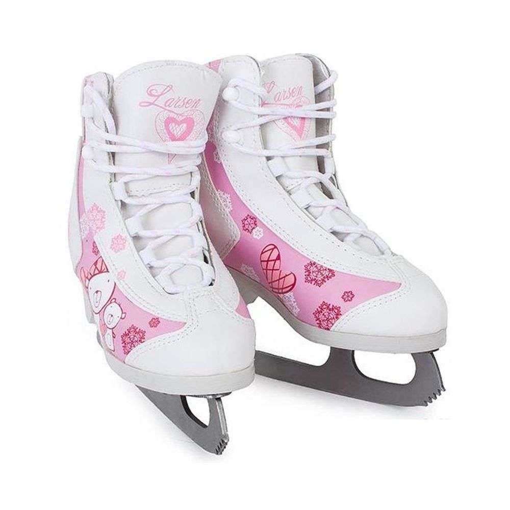 Larsen Love — невероятно привлекательные по внешнему виду коньки, которые помогут малышам познакомиться с катанием . Модель полностью изготовлена из винила, что снижает ее долговечность. Но, к счастью, на этом недостатки заканчиваются, поскольку высокопрочные металлические лезвия способны показывать лучшие эксплуатационные свойства. За счет крючков нога дополнительно надежно фиксируется и делает катание безопасным.