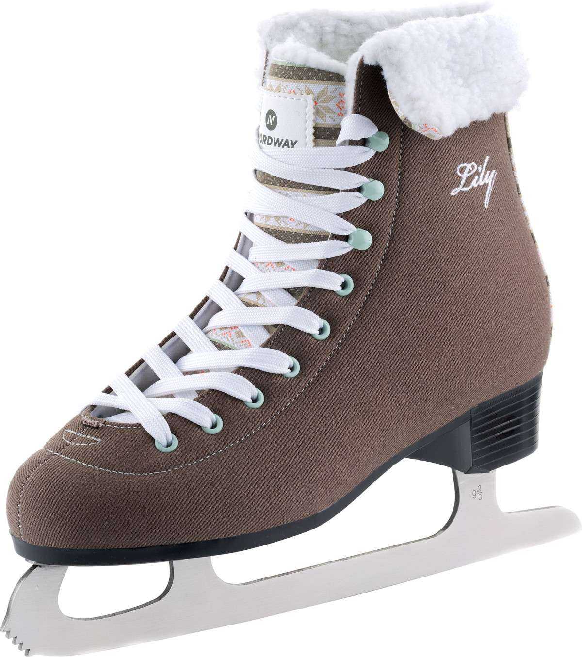 Ботинки модели NORDWAY Lily выполнены из редкого сочетания материалов: внутренняя часть отделана искусственным мехом, в а снаружи был использован износостойкий хлопок, пропитанный специальным влагостойким составом. Подошва у ботинка резиновая, полностью исключающая вероятность растрескивания при значительном перепаде температур. Приятной особенностью коньков является и наличие анатомических вкладышей, улучшающих прилегание ботинка к ноге, повышающих комфортность и чувство льда. В конечном итоге, данный комплект смотрится идеальным выбором для начинающих.