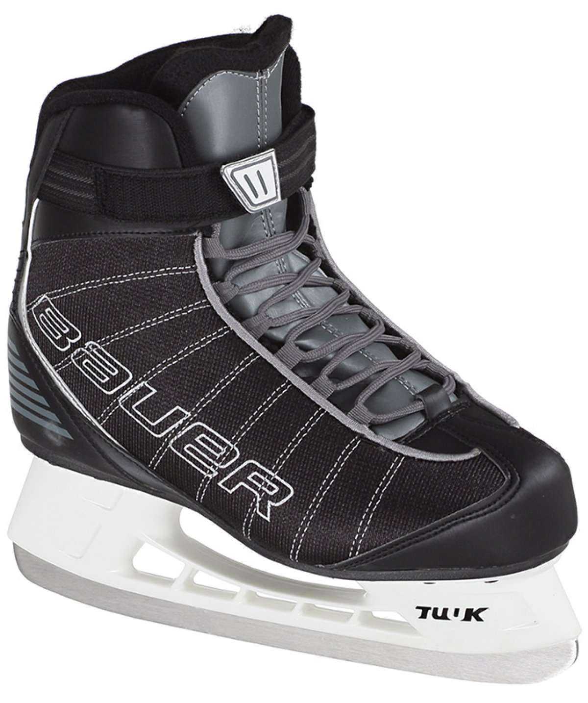 Мужские коньки канадской компании Bauer. Наличие суппорта голеностопа и удачно подобранная форма ботинка обеспечивают надёжную и комфортную фиксацию ноги во время проката. Казалось бы, придраться не к чему, однако в сети проскакивают комментарии о наличии в коньках серьёзного брака: в некоторых экземплярах присутствует элемент, который серьёзно натирает голень со внешней стороны, даже при условии идеально подобранного размера. Если брать в расчёт баланс и качество исправной модели, то Bauer Flow однозначно находится в приоритете. Тот факт, что данные претензии носят эпизодический характер, может говорить о физиологическом отклонении от общепринятых стандартов, связанных с особенностью развития. Сами же коньки более чем заслуживают внимания начинающих любителей льда своим качеством и сбалансированной стоимостью.