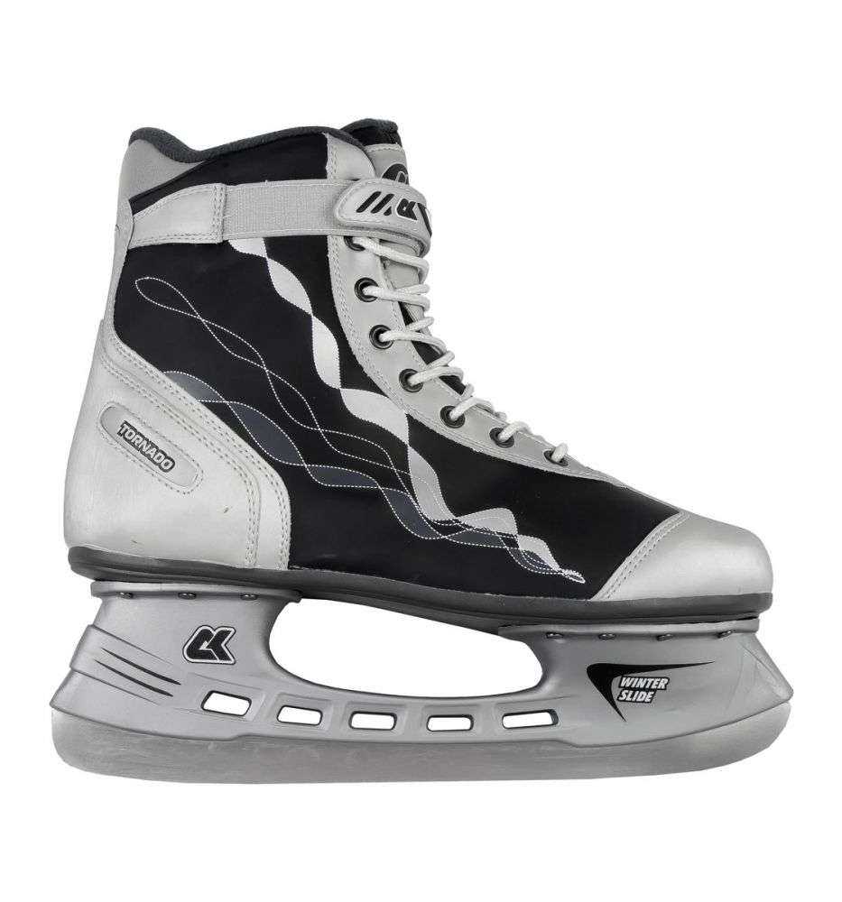 Отличные коньки для выхода на лед начинающим и любителям предлагает модель СК Tornado. Лезвие из высокоуглеродистой стали, шнуровка имеет в верхней части дублирующую застежку-липучку, позволяющую ограничить спадание конька при плохой затяжке. Стопа и голень обеспечены защитой от вывихов и переломов встроенным усилителем-супинатором. Ботинок садится плотно, хорошо облегает ногу и очень теплый — подкладка выполнена из синтетики. Если вы не знаете, какие коньки лучше для начинающих, то присмотритесь к данной модели.