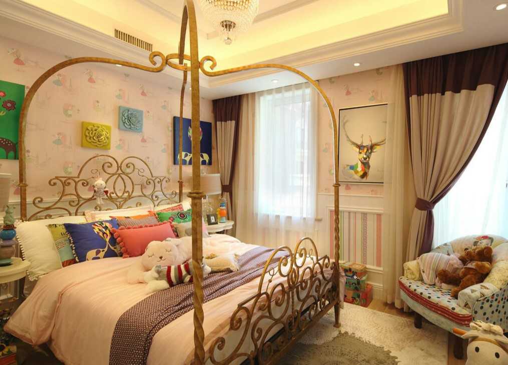 В комнате можно установить центральную люстру, потолочные светильники и настольную лампу