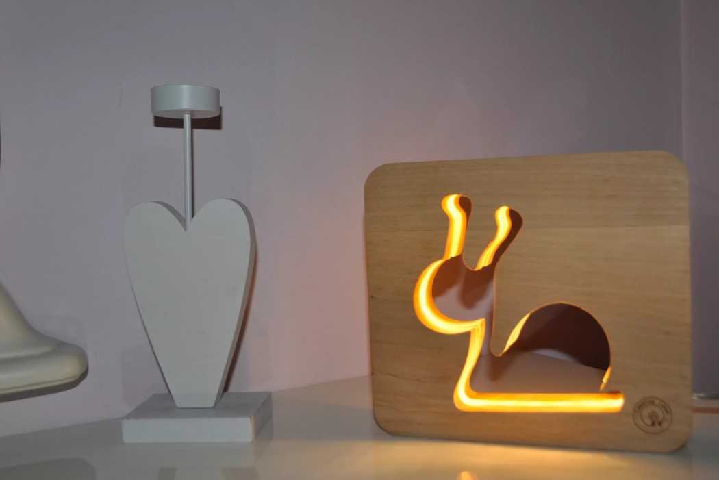 Оригинально выглядит и светильник в виде улитки на столе. Также в продаже встречаются ночники в виде светящегося куриного яйца.
