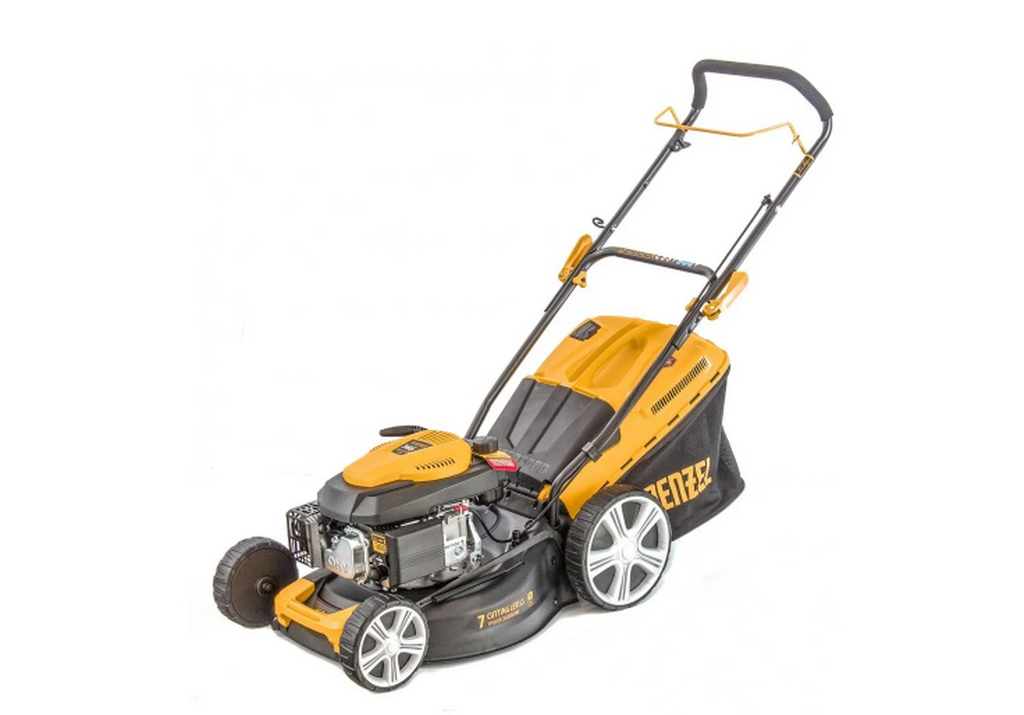 Модель, стоимость которой достигает 28 тыс. рублей – выше среднего показателя для газонокосилки, рекомендованная площадь обслуживания для которой составляет 10 соток. Высота стрижки может устанавливаться в пределах 25–75 мм, при ширине захвата 460 мм. У газонокосилки есть функция мульчирования и возможность быстрой очистки от остатков травы. Двигатель марки Denzel отличается высокой экономичностью топлива, а нож сделан из закалённой стали, потому способен срезать даже достаточно сухую и твёрдую растительность.