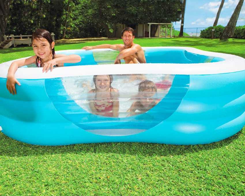 Удачной покупкой для семьи с маленькими детьми станет надувной бассейн с невысоким бортиком