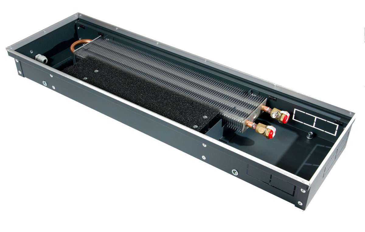 Водяной конвектор с вентилятором подходит для обогрева продуваемых, холодных помещений. Лучшее решение – установка внутрипольного конвектора данной модели в помещениях с панорамными окнами – такой ход позволит не вешать на стены дополнительное оборудование и полностью обеспечить надежное и качественное отопление. В качестве теплоносителя используется вода и гликоль.