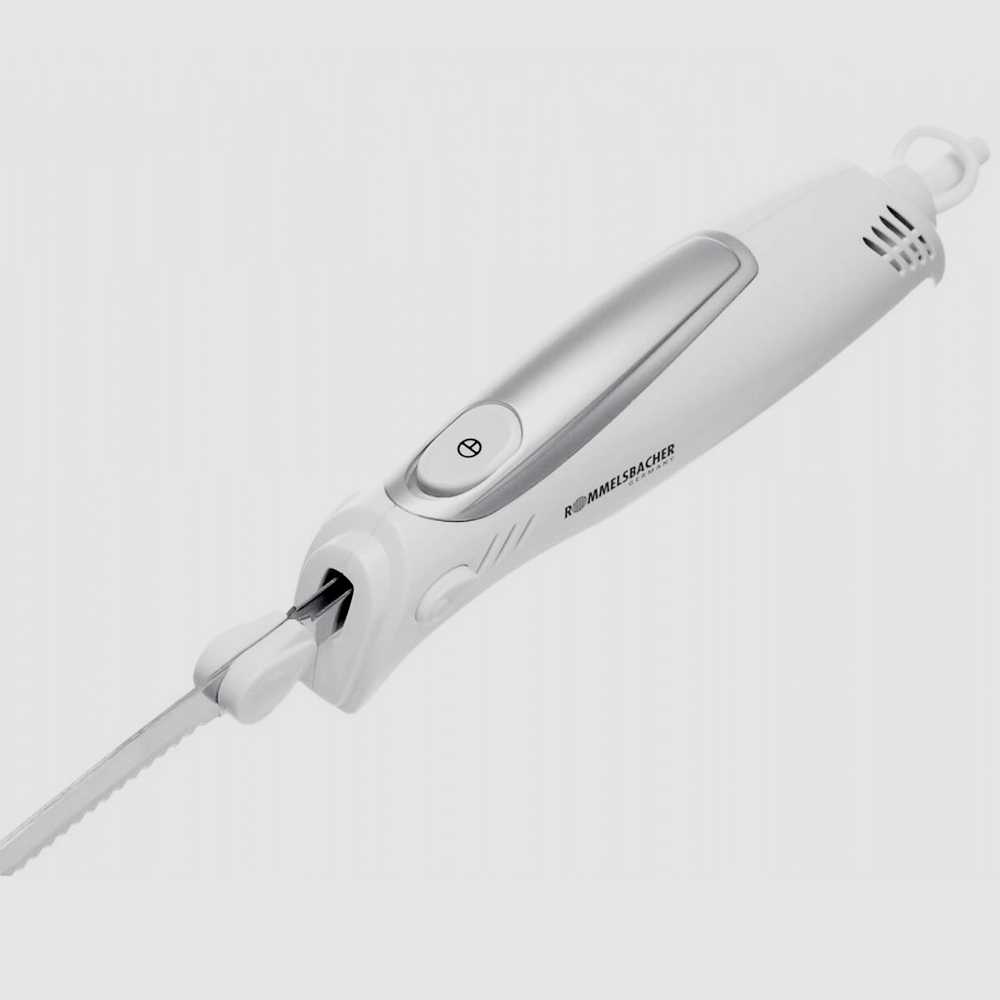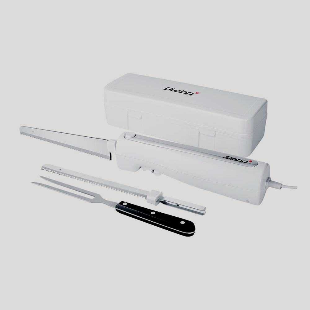 Именно такой инструмент лучше купить для домашнего пользования. В основе лежит использование двух лезвий длиной по 175 мм. Первый вариант оснащен крупными зубчиками, в то время как второй — мелкими. Это делает прибор универсальным, так как с его помощью можно не только нарезать аккуратные ломтики хлеба, но и стейки, овощи и замороженную рыбу. С обозначенными функциями ножи, изготовленные из нержавеющей стали, справляются отлично. Установленный двигатель практически не вызывает вибраций, что делает возможным продолжительную эксплуатацию без необходимости в частых перерывах. На кнопке выключения и включения имеется предохранительный контур, который исключает риск появления серьезной поломки. Для последующего хранения можно использовать петельку, которая имеется на корпусе. Вес ножа – 500 г.