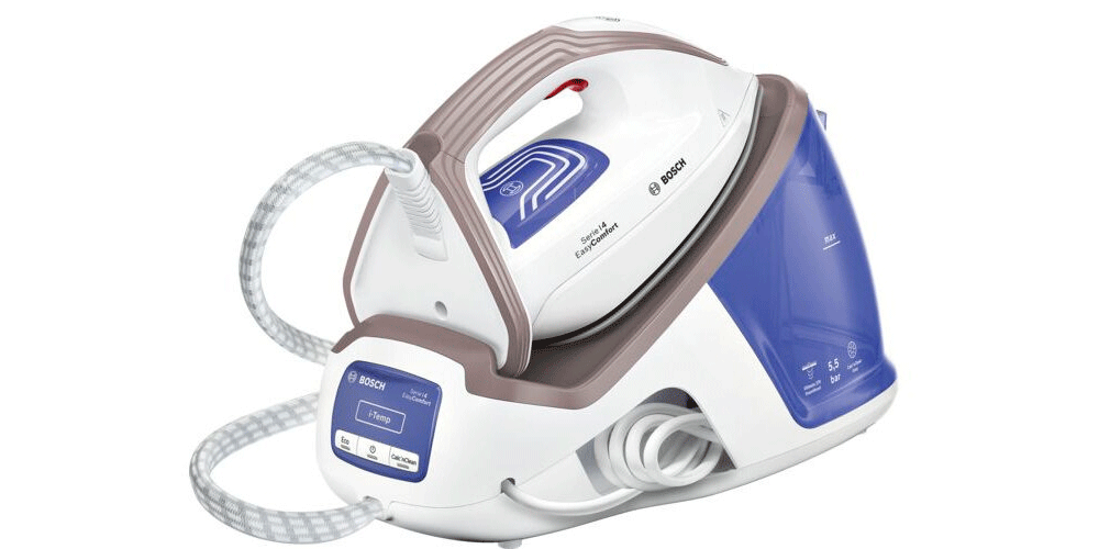 Шестое место в ТОПе занимает Bosch TDS 4040. Модель с меньшим по размеру бойлером (1,3 л), но обеспечивающая в 3 раза большую производительность. Подача пара происходит со скоростью 120 г в минуту под давлением 5,5 бар, т. е. обеспечивает быстрое разглаживание и отпаривание лучшего качества за счёт глубокого проникновения пара в волокна ткани. Паровой удар в два раза мощнее – 270 г в минуту. Отдельно хочется выделить использование производителем технологии i-Temp, которая обеспечивает использование автоматических базовых настроек, подходящих для любых материалов. Т. е. пользователю не нужно менять температуру и скорость подачи пара для каждой ткани, поэтому процесс разглаживания и обработки пара происходит быстрее и проще.