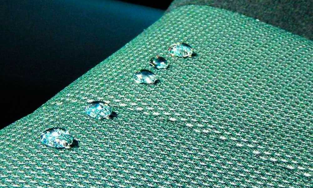 Наиболее популярный вид – пропитка типа WR, которая наносится только на внешнюю сторону материала. Обработанная ткань не подвержена промоканию, так как капли воды скатываются по защитному слою.