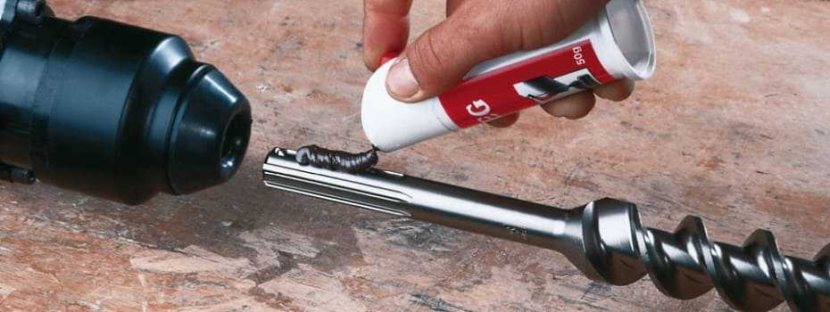 Рабочая оснастка перфоратора (бур) испытывает огромную нагрузку во время своего вращения в патроне. Чтобы защитить её от чрезмерного нагрева и быстрой поломки, используют специальную смазку. Она помогает уменьшить трение и продлить срок службы инструмента.