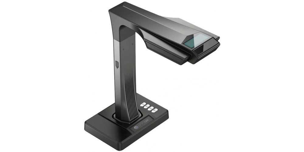 Фотоаппаратный сканер с датчиком CMOS. В отличие от модели Plustek OpticFilm 8200i SE с интерфейсом USB 2.0 этот прибор дополнительно можно подключить по Wi-Fi. Совместимость в ПК, встроенный накопитель ёмкостью 1 Гб. Работает с бумагой разных размеров (максимальный – формат А3). Глубина цвета – 24 бит. Разрешение – 4608×3456 dpi. Скорость сканирования (как ч/б, так и в цвете – 1 лист в секунду). Форматы скан-копий — JPG, PDF, TIFF, MJPEG, YUV. Возможно сканирование объёмных объектов. Цена – 32900 руб.