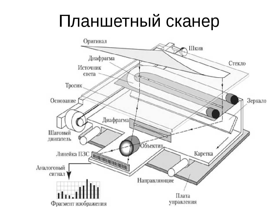 - Контролер интерфейса. Его работа заключается в контроле информации и команд, передаваемых со сканера на компьютер.