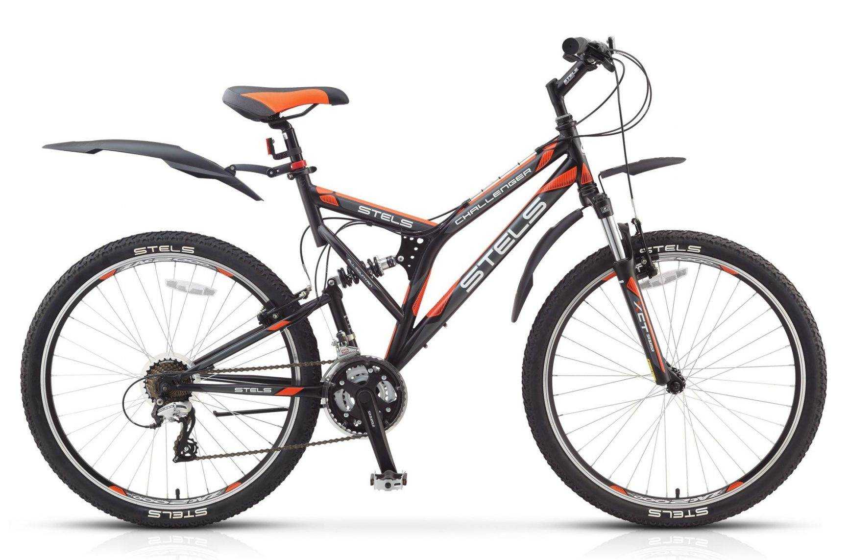 Среди наиболее бюджетных двухподвесов, заслуживающих внимания и вхождения в топ-рейтинг, по мнению специалистов, – велосипед Stels Challenger V26 V010. Выпущенный в 2018 году, он сразу стал пользоваться повышенным спросом. Изготовленная из стали рама способна длительно выдерживать высокие нагрузки, однако делает эти двухподвесные конструкции излишне тяжелыми. Ход вилки амортизатора составляет 80 мм, что является не слишком большим значением, но вполне способно обеспечить мягкость на проселочной дороге. 21-скоростная трансмиссия позволяет преодолевать серьезные препятствия, рационально распределяя усилия.