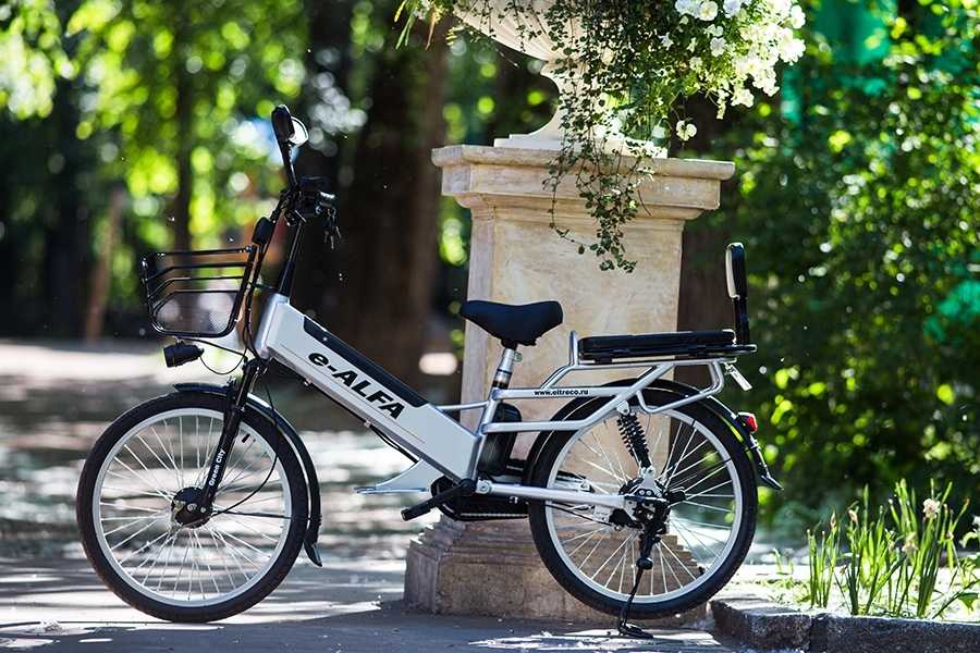 - Eltreco e-Alfa L. Комфортный и достаточно быстрый байк, предназначенный для езды по городским улицам. Мощность двигателя — 350 Вт. Оснащен корзинкой, установленной на руле, детским креслом.