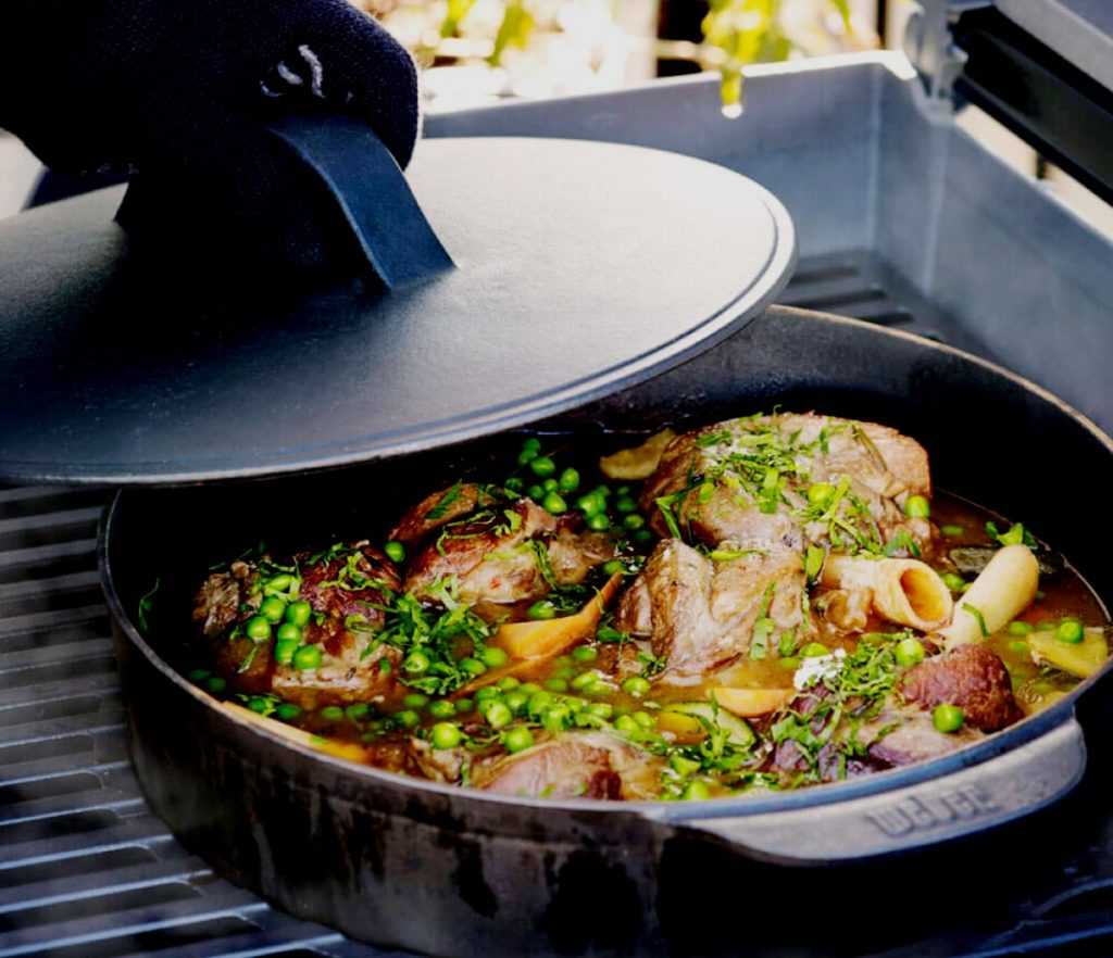 Несколько слов о том, какие блюда можно готовить в чугунной посуде. Прежде всего, это мясо и рыба. Хороши также гарниры из овощей, злаков и грибов, приготовление которых предполагает длительное томление при умеренной температуре. Такую технологию принято называть эффектом русской печи.