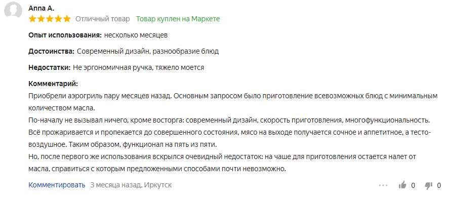 - ограниченный объем подогреваемой пищи в аэрогрилях с маленькой чашей.