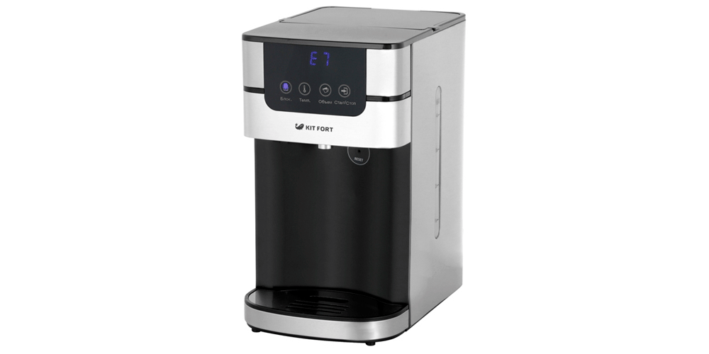 Модель представляет собой прибор, который не нагревает и не поддерживает горячим весь объём залитой воды, как остальные, а греет только необходимую порцию. За счёт высокой мощности нагрев осуществляет практически мгновенно. Как и VITEK VT-1193, Kitfort подаёт воду только определённой температуры, а также имеет сенсорное управление и удобный дисплей. 89% пользователей рекомендуют его к покупке