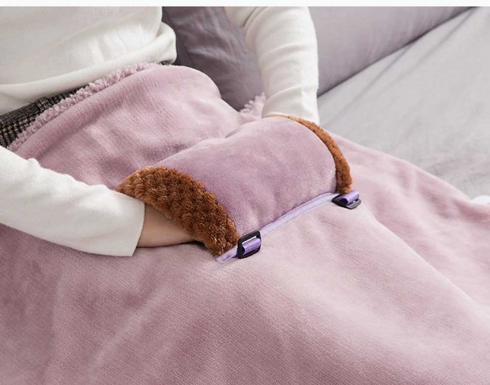 - Плюшевое одеяло послужит и без нагрева: используйте его как плед в достаточно тёплые дни и как грелку в холодные.