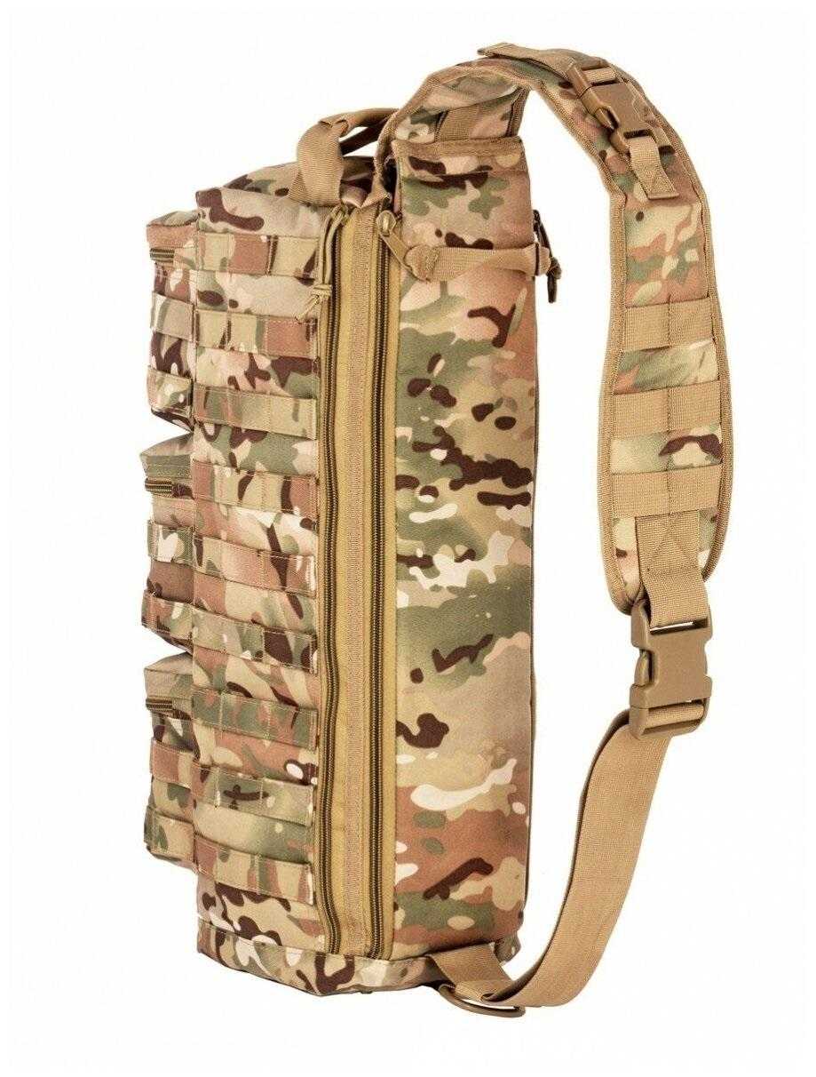 Стильный однолямочный тактический рюкзак выполнен в дизайне милитари, который подчеркивает цвет мультикам. Это настоящий военный вариант с многочисленными отделами, удобным боковым доступом, надежной лямкой с качественной застежкой. Его удается за секунды снять и снова разместить на спине. Он не мешает активным движениям, подходит для работы в условиях, максимально приближенных к боевым.