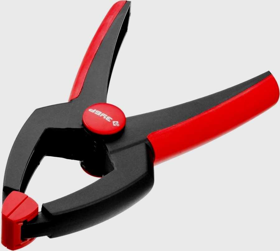 Мощная пружина в конструкции выступает одновременно плюсом и минусом. Она надежно удерживает зажатый элемент. Но из-за того, что зажимаешь инструмент одной рукой, работать долго не очень удобно.