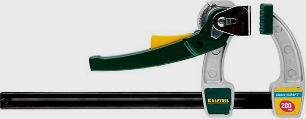 Kraftool – отличная быстрозажимная струбцина, которая не деформируется в процессе эксплуатации. Единственное, что останавливает многих от ее покупки — высокая цена.