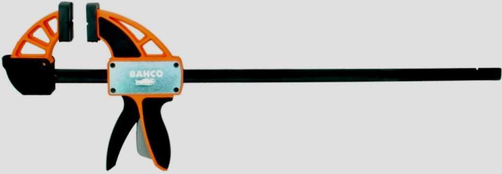 Для удержания крупногабаритных заготовок создана быстрозажимная струбцина BAHCO QCB-900. Швейцарское приспособление обеспечивает максимальный уровень безопасности и комфорта для работника. Длина рейки составляет 900 мм, губки оснащены резиновыми накладками. Поэтому фиксировать можно заготовки из древесины или пластика. Управлять приспособлением достаточно просто, для этого имеется обрезиненная рукоять с курком. Стоит на него нажать, чтобы ослабить крепление детали или переместить передвижную часть на необходимую длину.