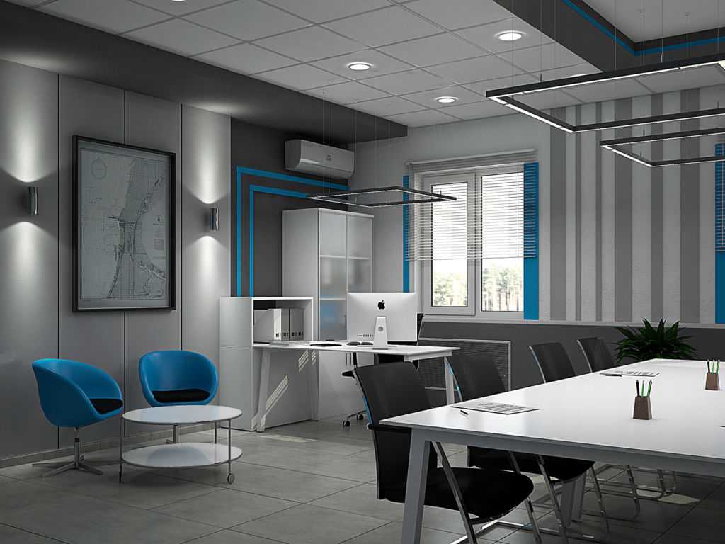 Четкие линии предметов мебели, прямые углы и немногочисленные аксессуары — рядовой кабинет