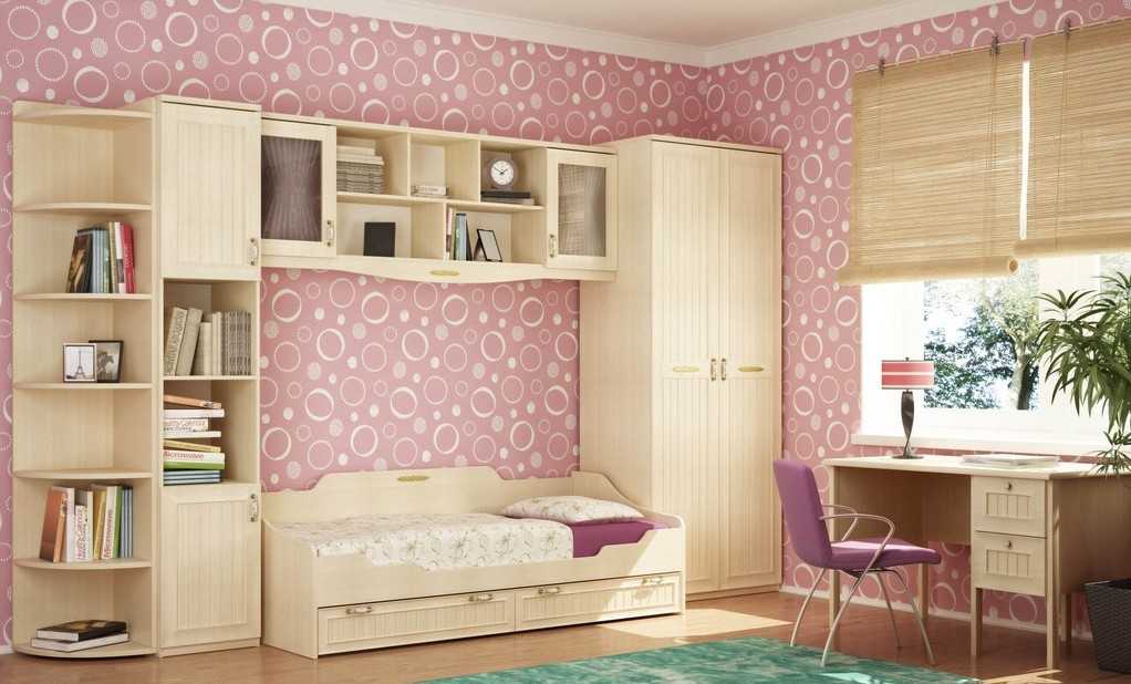Пространство для школьницы может быть отделано в нежных оттенках, с цветочными композициями. Расцветки могут быть различными, но база всегда либо молочный шоколад, либо пыльная роза, либо чисто белый. В «напарники» к нему можно взять сирень, бирюзу, лимонный оттенок. Соблюдая эти несложные рекомендации, самостоятельно оформить девочке дизайн мебели и интерьера в детской комнате для школьника сможет любой родитель.