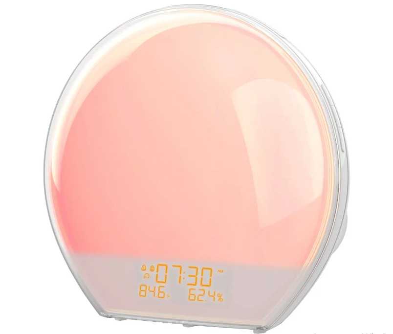 Это будильник, который имитирует восход солнца. Подготовка к пробуждению начинается за 30 минут – яркость постепенно увеличивается. А звуковой сигнал в указанное время завершает процесс. Наращивание интенсивности светового потока обеспечивает легкое пробуждение. Появляются условия, похожие на естественные – когда люди просыпаются от утренних лучей света.