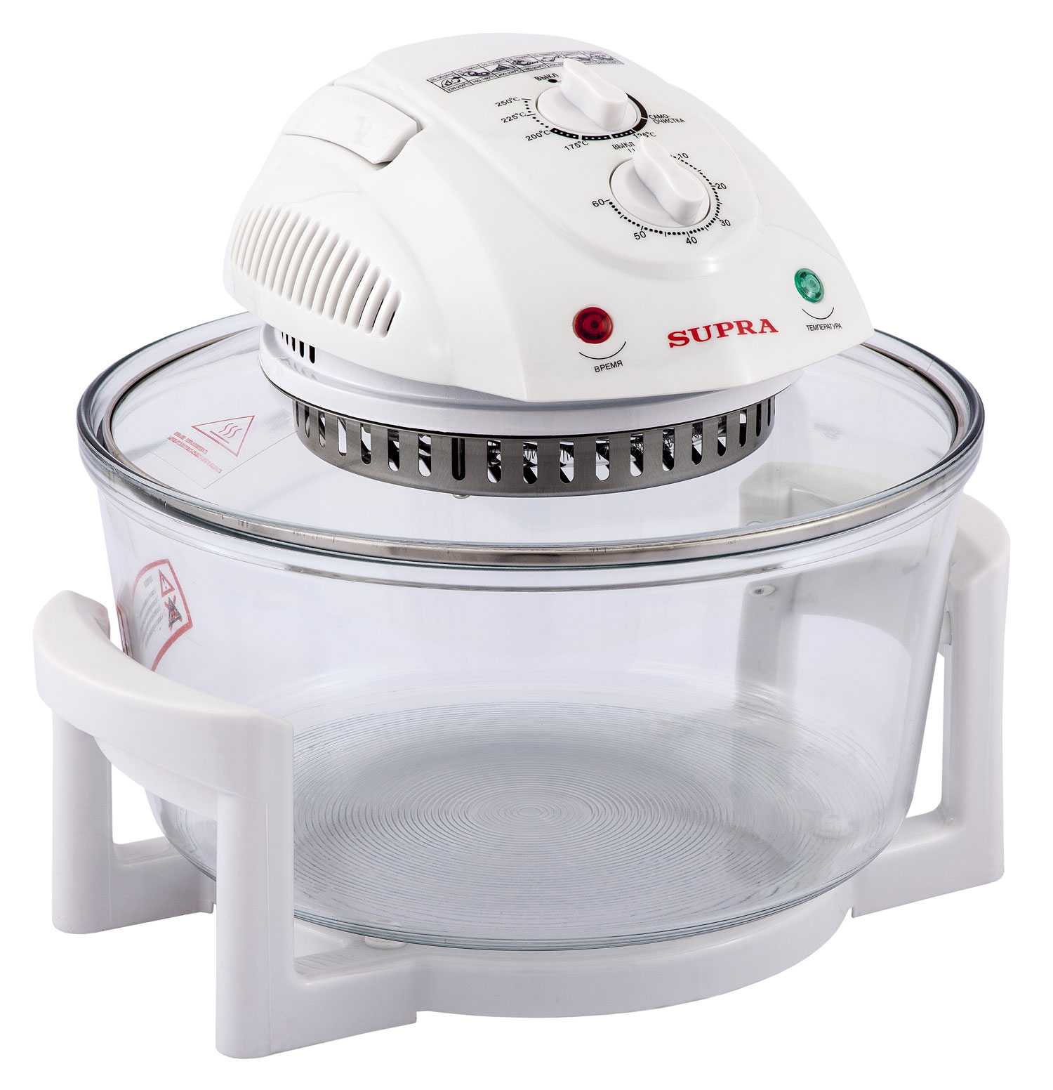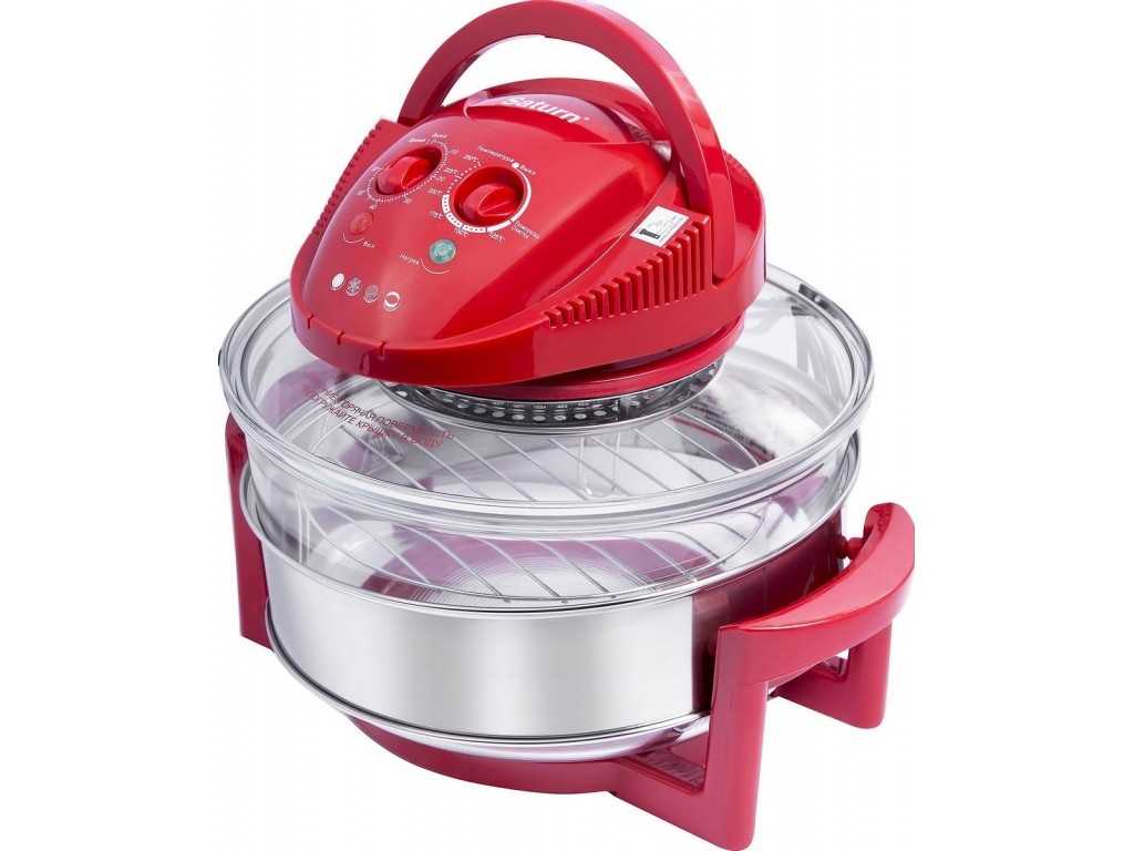 Еще один недорогой, но очень хороший аэрогриль для дома от российской фирмы-производителя. В аэрогриле реализована технология конвективного обогрева, продукты обрабатываются потоком горячего воздуха, нет необходимости использовать масло, а значит на выходе получается более здоровая и полезная пища. Чаша из высококачественного жаропрочного стекла имеет номинальный объем в 12 литров, это не очень много, но для семейного использования в самый раз. Есть световые индикаторы работы и степени нагрева.