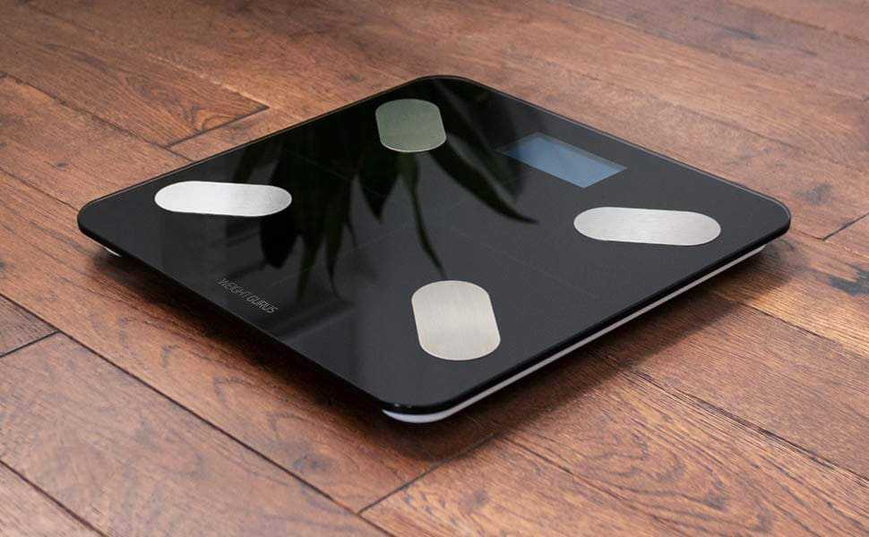 Устройство не только измеряет вес, но диагностирует долю жировой и мышечной тканей, объем воды в теле, а также определяет соотношение в процентах мышечной и жировой массы.