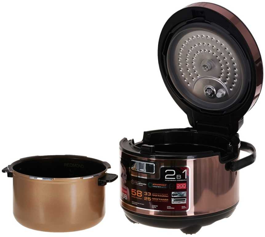 В мультиварке Redmond можно приготовить обед или ужин для всей семьи благодаря вместительной чаше на 5 литров. Функциональность устройства включает режим тушения, жарки, выпечки, варки супа и даже приготовления хлеба. Кроме того в модели есть позиция «мультиповар», руководствуясь которой можно приготовить любимое блюдо по своему рецепту. Аппарат сам отключится по завершению программы и перейдет в режим подогрева. Вместе с этим можно отсрочить запуск на необходимое время, а таймер и большое табло сделают процесс управления простым и легким.
