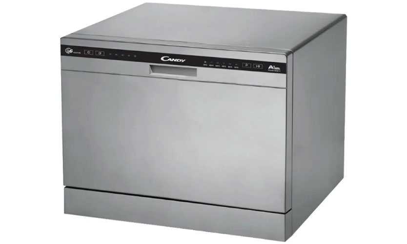 Candy CDCP 6/E-S, как и предыдущие модели, за один раз моет 6 комплектов посуды. 6 режимов работы, предусмотрены дополнительные функции: отсрочка запуска, защита от детей, сенсор чистоты воды.