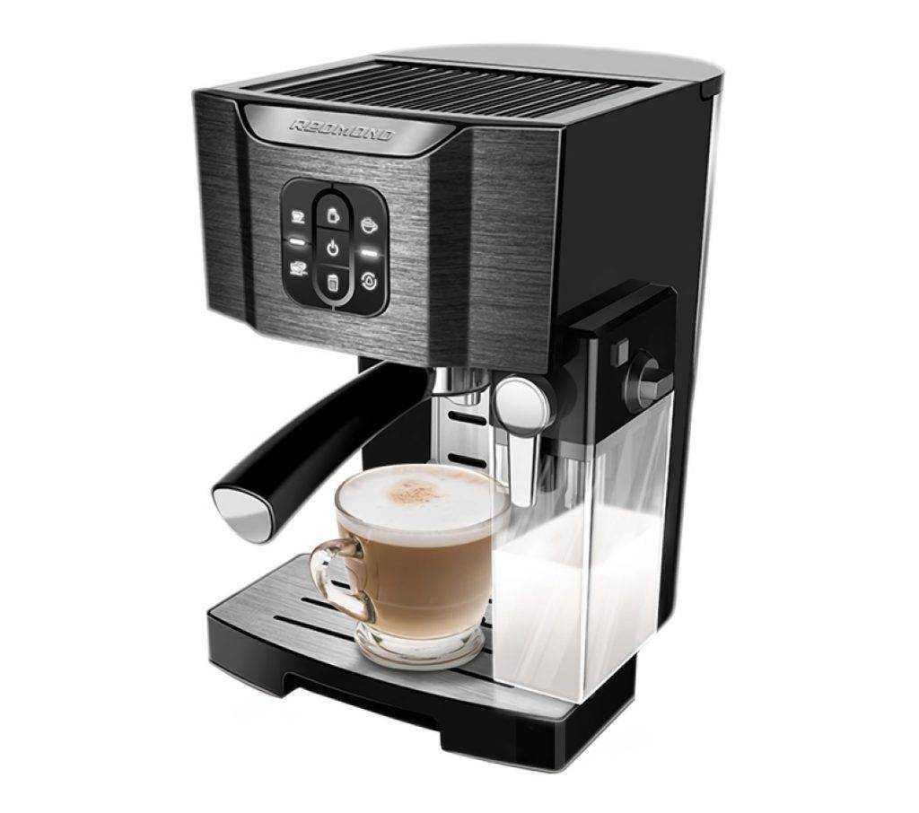 Первую рожковую модель предлагает популярный российский бренд «Redmond», прославившийся доступными ценами. Это кофеварка типа эспрессо, гурманы считают ее лучшим товаром бюджетного сегмента.