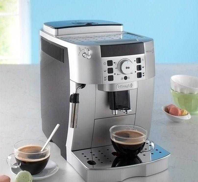 Модель De’Longhi Magnifica ECAM 22.110 может похвастаться простой очистки, бесшумной работе, а также вкусу кофе. В сумме с удобством использования кофемашина занимает первое место рейтинга.