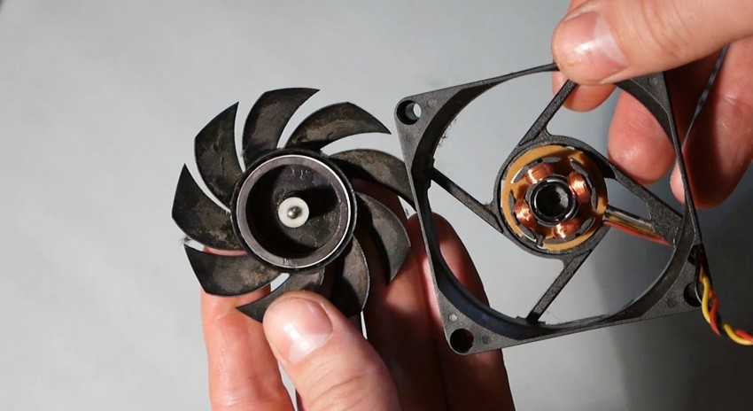 Как выявляется подобный дефект? В этом случае вентилятор перестает вращаться. Он гудит, но крыльчатка не крутится.
