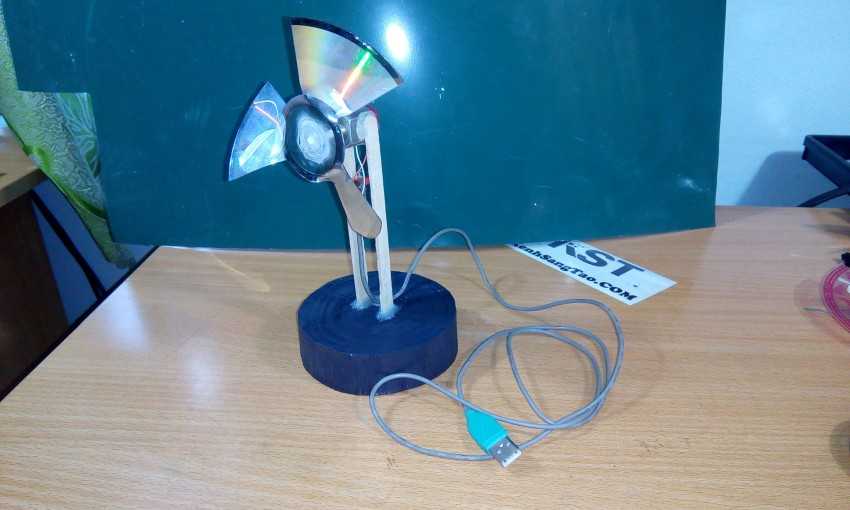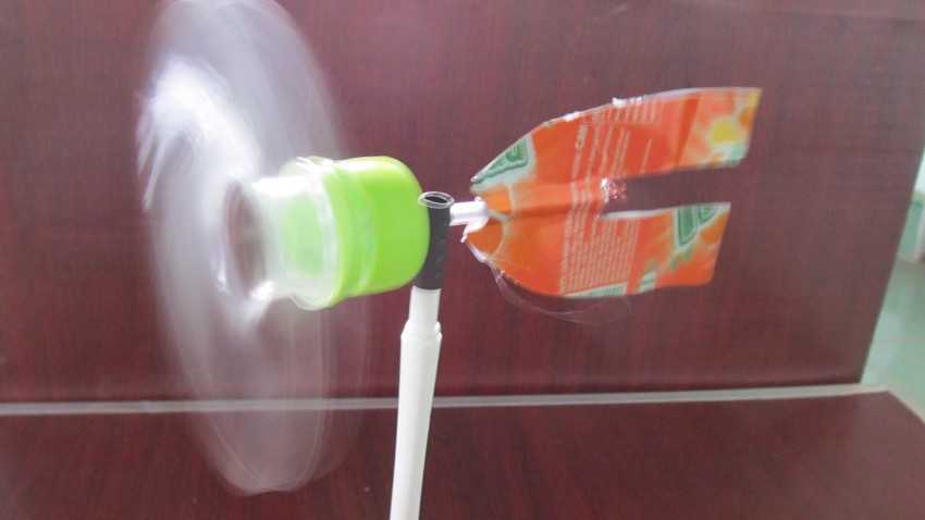 Моторчик с пропеллером приклеивается к гибкой стойке либо с помощью термоклея, либо приматывается той же изолентой. Если вы не собираетесь участвовать в конкурсе дизайна вентиляторов, об эстетике можно не беспокоиться.