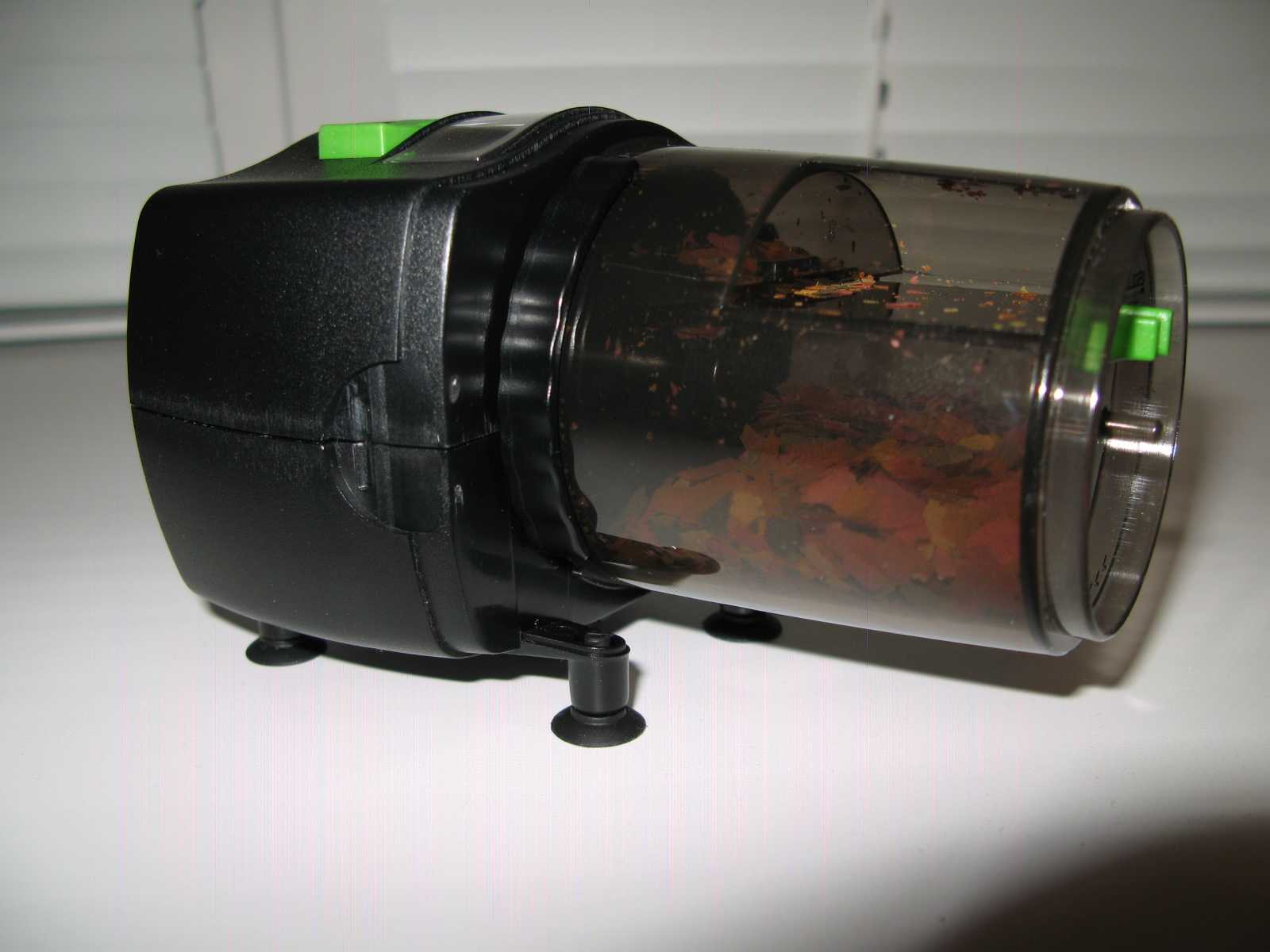 Если аквариум один в доме, то с кормлением обитателей не возникнет проблем. Если же их несколько, и к тому же периодически возникает необходимость отъездов, понадобится автоматическая кормушка. Сделать ее можно из любой наклонной плоскости, на которую постоянно идет подача корма, и элемента, который будет создавать вибрацию. Это может быть даже мобильный телефон. Позвонив на телефон, можно активировать сигнал вибровызова, что заставит корм высыпаться в воду.