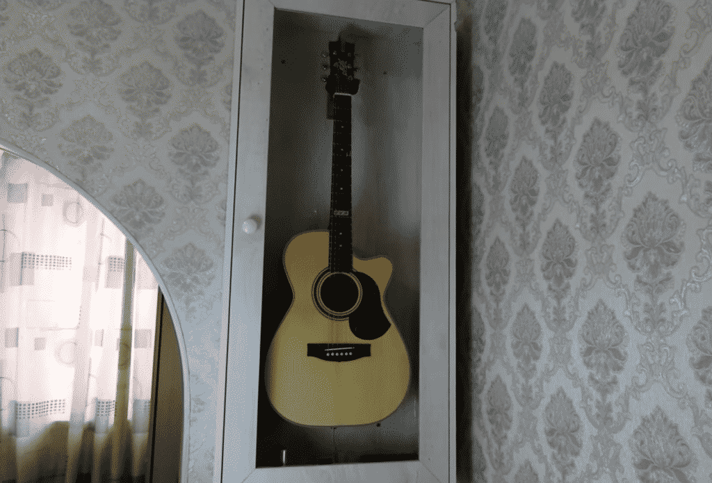 В жестяной или пластмассовой баночке проделать небольшие отверстия и положить смоченный в воде поролон. После чего полученное приспособление поместить в корпус гитары, и хорошо закрепить его там.