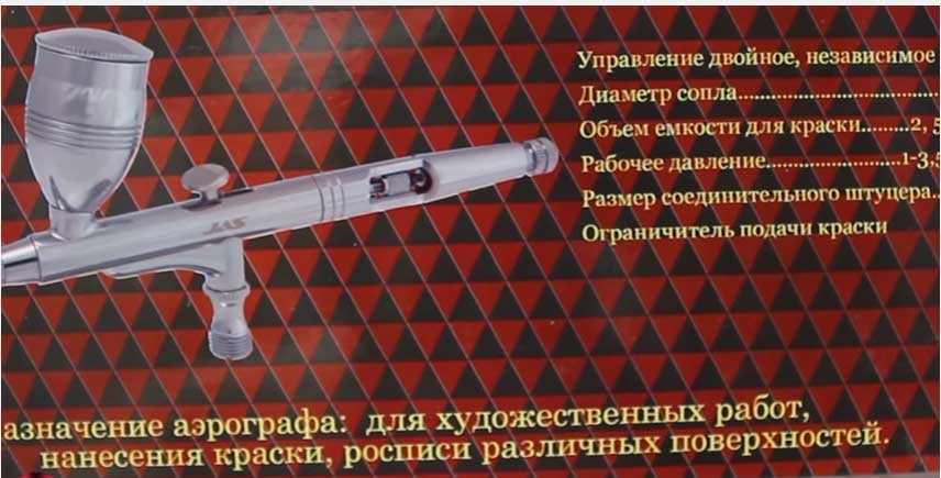 - под давлением при помощи компрессора в ручку подаются краска и воздух;