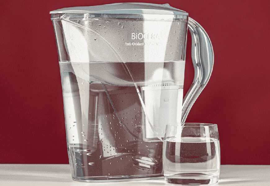 Кувшин-ионизатор Biocera AA Water Jug очищает воду от хлора.