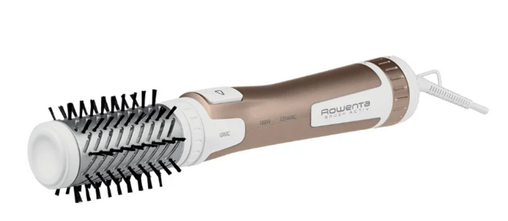 Эта фен-щетка отличается долговечностью, многие пользователи говорят, что пользуются ею более 5 лет. Прибор имеет высокую мощность, но при необходимости может быть переключен в щадящий режим, поэтому пряди не будут пересушены. В комплекте идет пять различных насадок с покрытием из керамики, есть ионизация. Дополнительный комфорт обеспечивается тем, что щетина и зубцы могут убираться внутрь. Эта же функция продлевает срок эксплуатации насадок.
