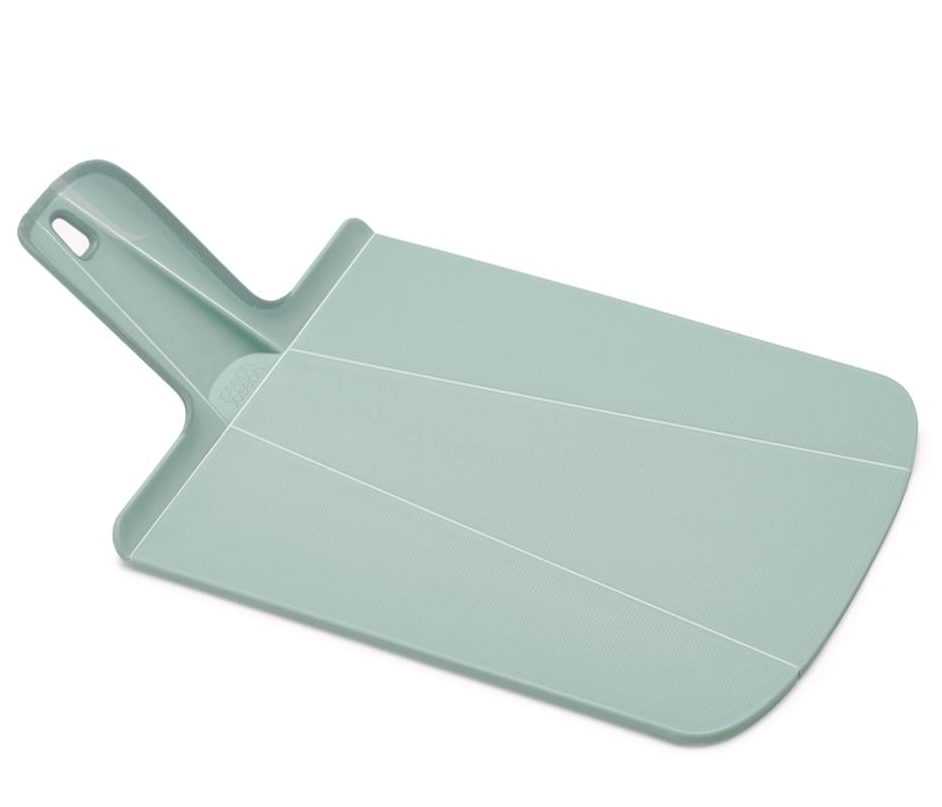 На первом месте в категории оригинальная модель доски. Изготовлена из пищевого пластика, отличающегося высокой прочностью. Поверхность имеет специальное покрытие в виде пупырышков, благодаря которому не тупятся лезвия ножей и не прилипает пища. Особенностью модели являются полосы, по которым доска сгибается, образуя подобие совка, что позволяет удобно пересыпать нарезанные кусочки в посуду для дальнейшего приготовления. Эргономичная ручка оснащена вставками из прорезиненного материала, поэтому даже из влажных рук она не выскользнет. Такие же вставки расположены на обратной стороне, чтобы изделие прочно фиксировалось на столешнице. Размер доски составляет 22 х 28 х 0,5 см.