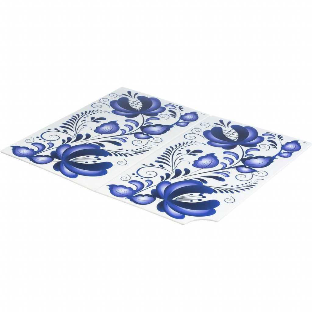 Четвёртая строчка достаётся складной разделочной доске. Изготовлена их прочного пищевого пластика (полипропилена). Материал устойчив к механическим повреждениям, не впитывает запахи. По краям проходят желобки для стекания сока от нарезаемых продуктов. Складывается по типу шахматной доски – пополам. Размер составляет – 35 х 28 см. Модель идеально подойдёт для разделывания овощей, фруктов, зелени, теста. Красивый рисунок дополнит кухонный интерьер. К доске можно подобрать в таком же стиле салфетки, сушилку для приборов (ложек, вилок и т. д.), нож с рукоятью «гжель». Это станет отличным подарочным набором, причём за довольно небольшую цену. Если хотите порадовать близких или себя, то обязательно присмотритесь к доске от Idea.