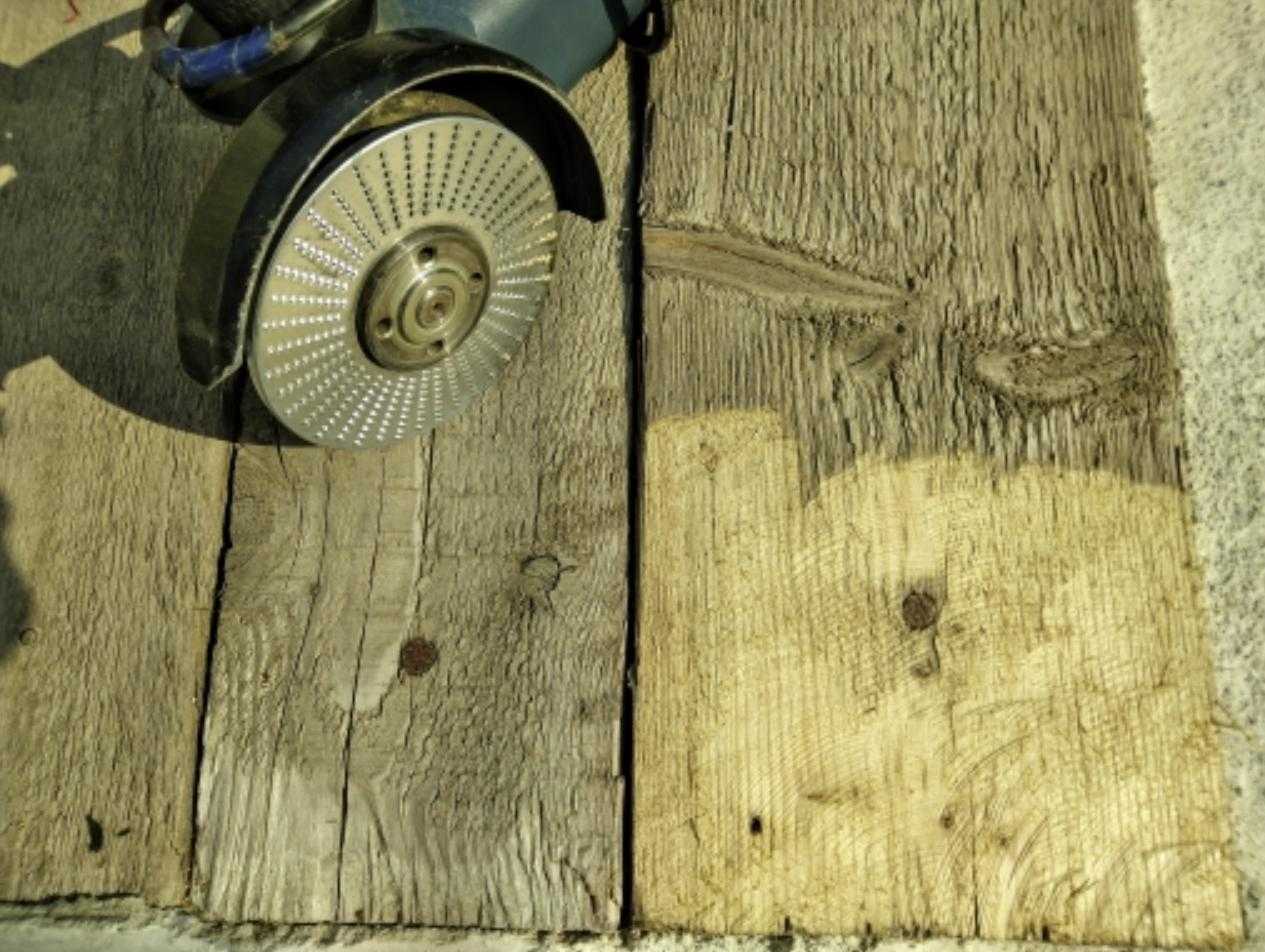 Главный секрет – шлифмашина используется на минимальных оборотах. Если болгарка имеет переключатель скоростей, то проблем не будет. На больших оборотах наждачная бумага будет очень быстро и очень плотно забиваться древесиной. В таком режиме ее не хватит и на пять минут работы. Оптимальная скорость не более 6000 оборотов.