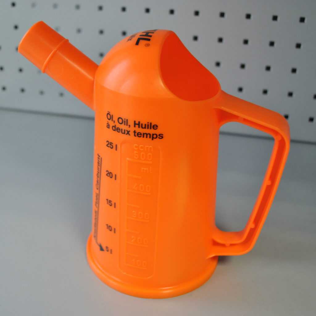 Разводят масло в бензине, соблюдая определенную последовательность. Предварительно в канистру или другую емкость его выливают, после чего в ту же емкость осуществляется добавка подходящего бензина, используемого в той или иной бензопиле. Объем бензина должен составлять примерно около половины от требуемого количества топлива.