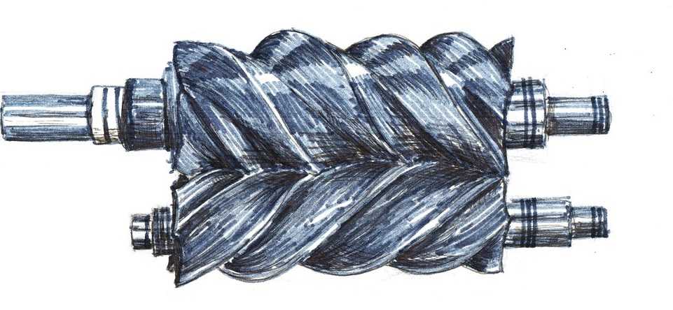 Давайте для начала мельком рассмотрим историю создания винтового компрессора. Предыстория становления объекта нашей статьи позволит лучше прочувствовать достоинства подобного решения. Примечательно, что подобное оборудование появилось относительно недавно, первые винтовые установки получили распространение в 1940х годах. Да, за историю своего существования техника претерпевала небольшие изменения, установки становились компактнее, эффективнее и дешевле, но принцип действия оставался всё тем же. Для наглядности, мы можем сравнить винтовые компрессоры с обычными винтовыми насосами. И там и тут эффективное решение поставленных задач обеспечивается, благодаря большому числу двигательных оборотов.